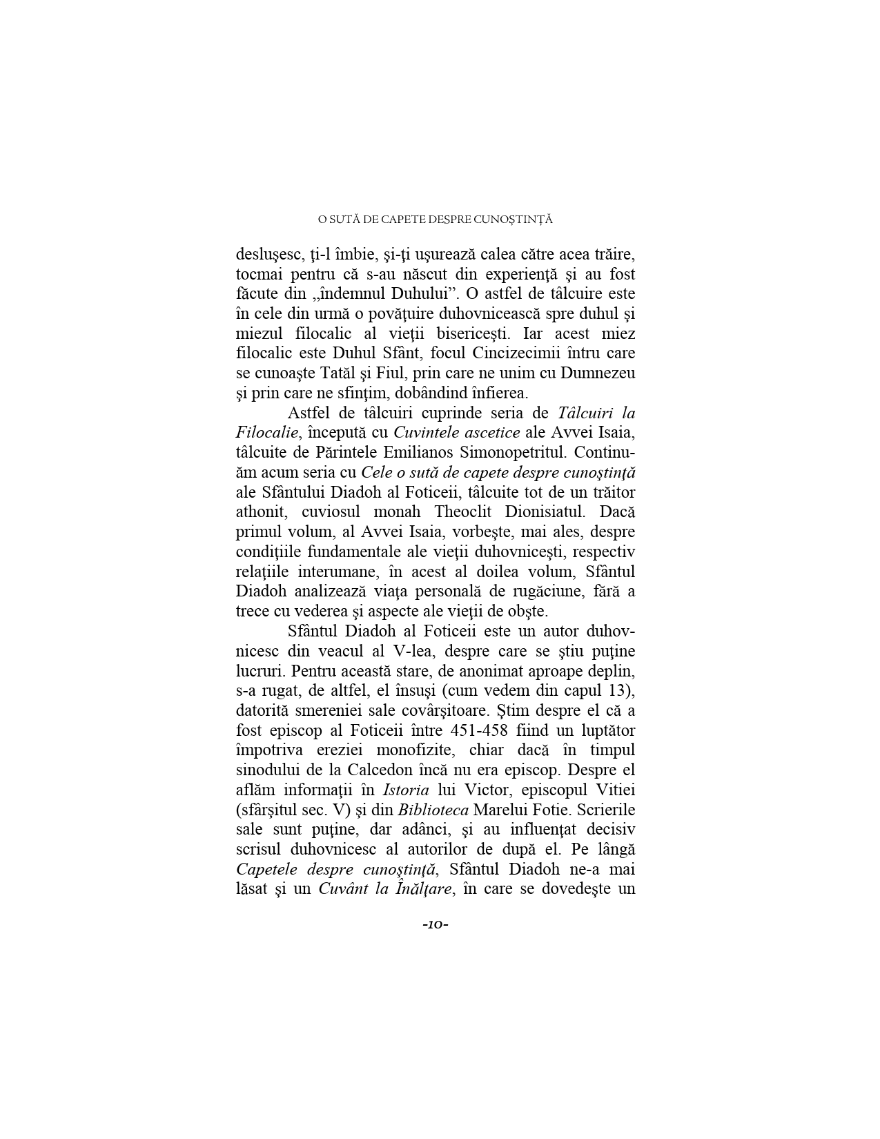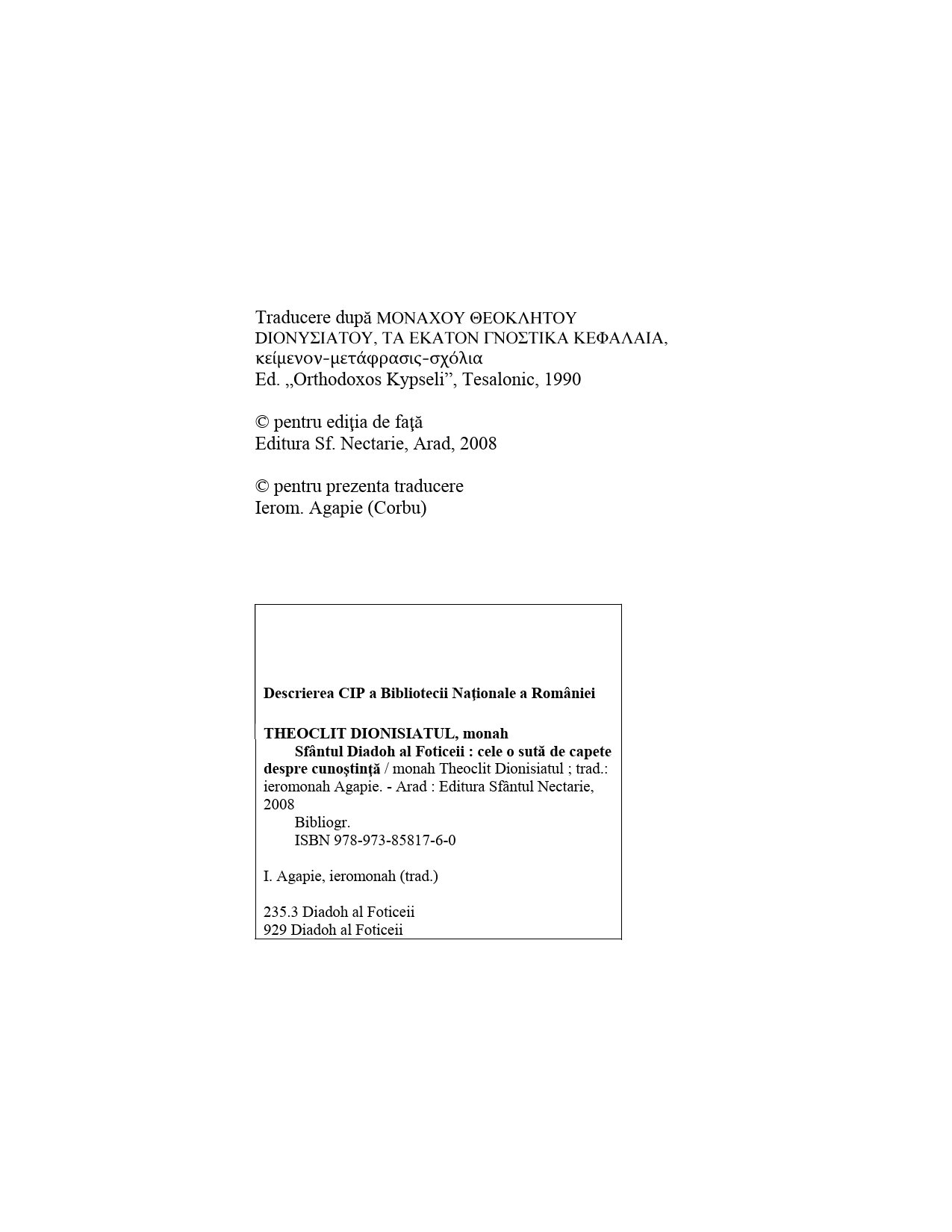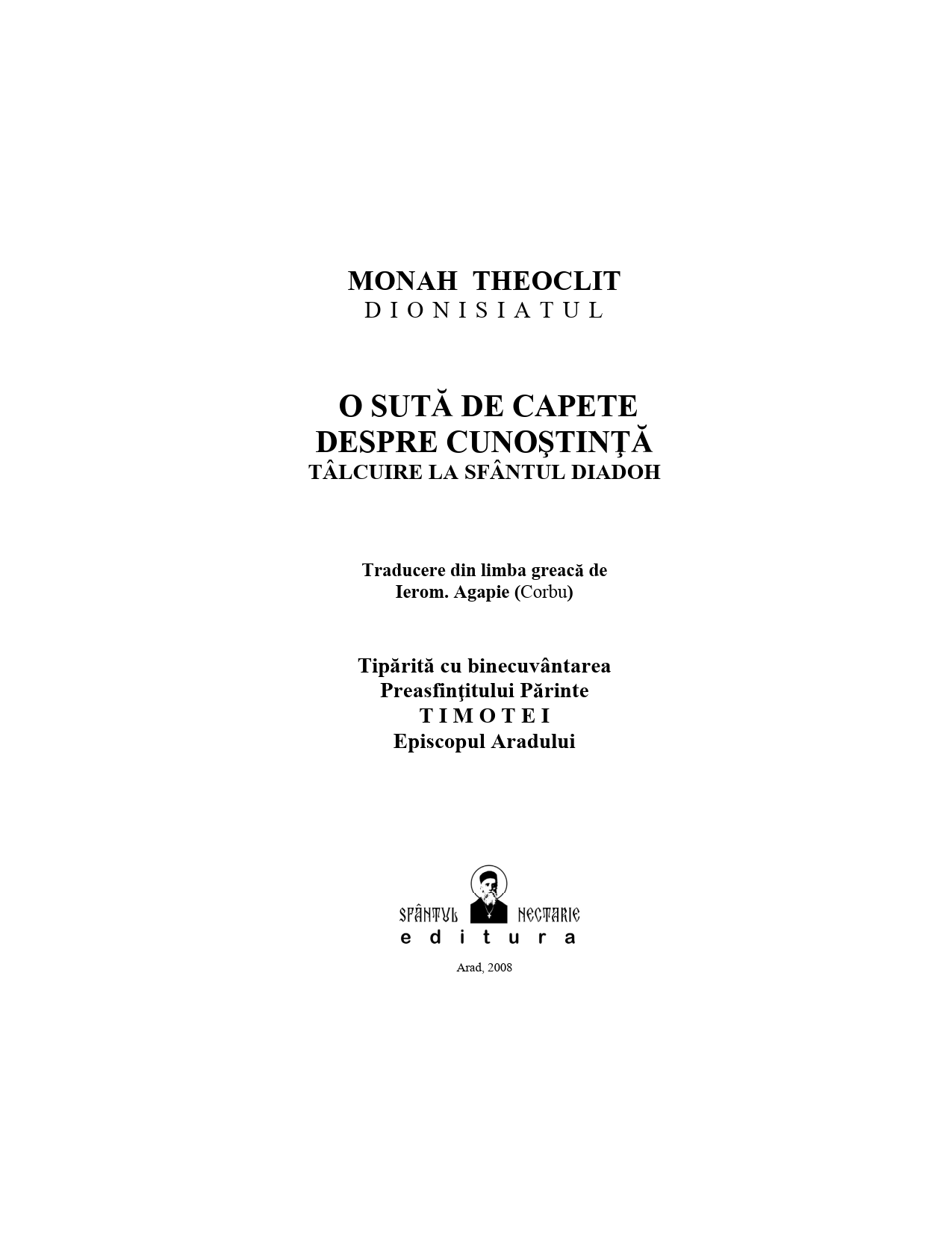 Monk Teokletos of Dionisiou A Commentary on Saint Diadochos of Fotiki, Chapters on Knowledge